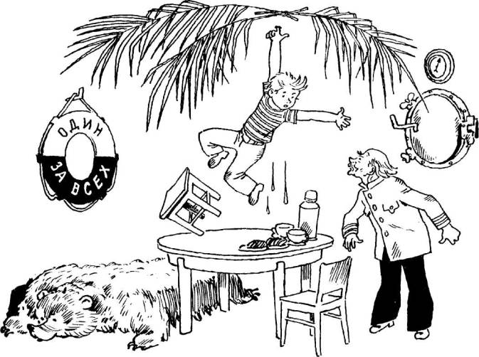 — Отлично, отлично! — потирая лоб, сказал капитан. — Будет настоящим моряком. — И он повёл Робинзона в свою рубку.