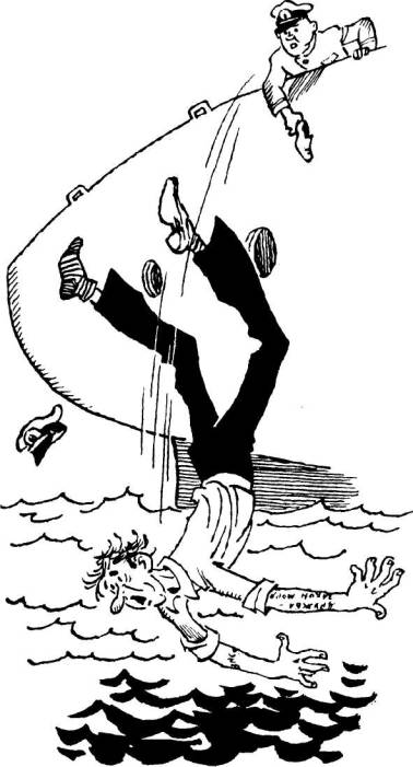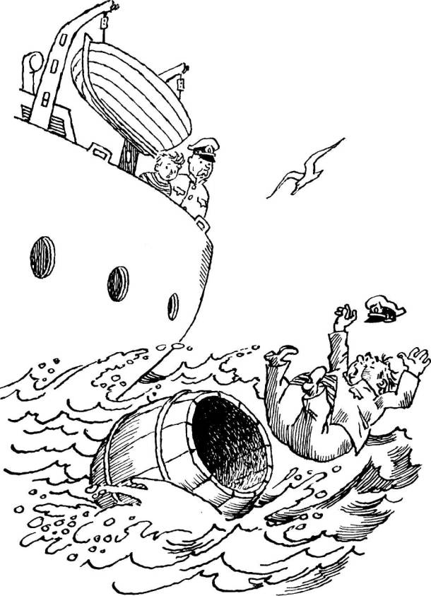 — Человек за бортом! — закричали на катере и бросились на помощь.