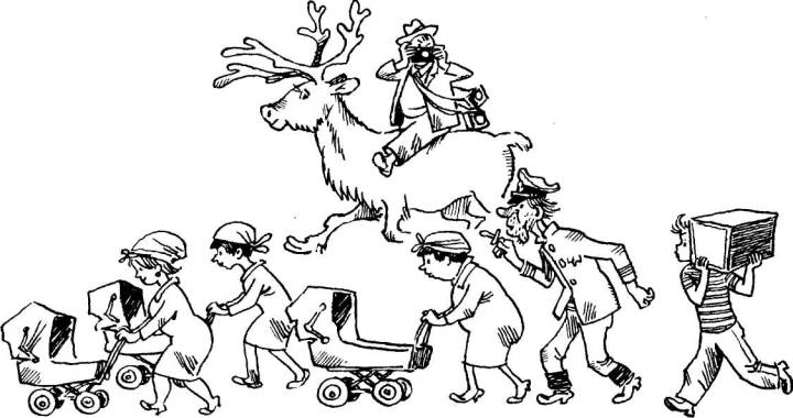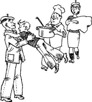 И через несколько минут Солнышкин, согнувшись в собственном мешке, въезжал на матросской спине в двери вагона.