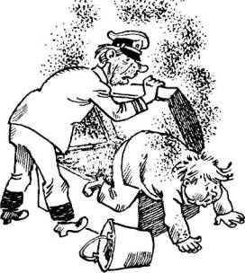 И вдруг он отскочил в сторону. Из-под его ног рванулся мешок, из которого появилась крепкая рыжая голова и с отчаянным криком:
