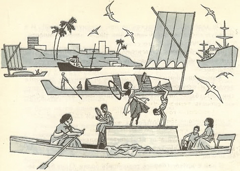 Но клёв кончился. Рядом со мной пританцовывал индийский повар, тянул какую-то непонятную песню. От берега к нам шли баржи с мешками. Опять пахло кунжутом, пылью. На краю неба отражался пустынный песок.