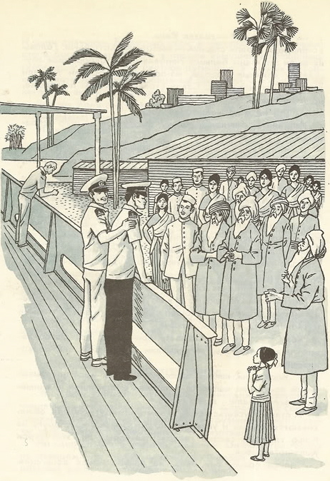 Но тут через борт перелез тонкий, чёрный индиец. Это подошли уже баржи с грузом и грузчиками. И на корму к нам торопился их повар. Он увидел акулу, протянул руки: