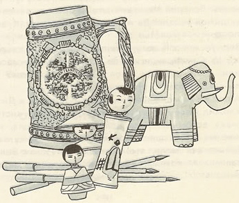 Вернулся я в каюту, открыл чемодан, а сверху — ещё чашка из Сан-Франциско, по которому мы всей командой ходили. Рядом лежит слон из Кочина. Стоят японские куклы — вон сколько проплыли!