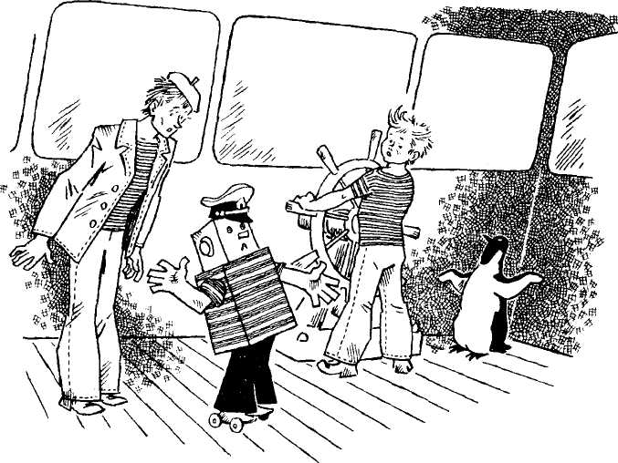 — Сели! — сказал капитан. — Плавали, знаем! — И загрохотал по трапу сапогами — теми самыми сапогами, в которых несколько месяцев назад с попугаем на плече топал по палубе знаменитого парохода «Даёшь!».