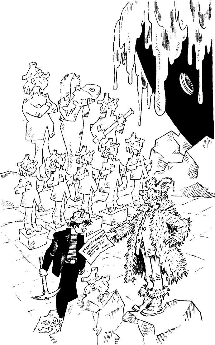 — «Зимовка»! Первая серия! — Это почти кричал Плавали-Знаем. Он сидел среди зрителей в шлёпанцах на стопке книг, по корешкам которых ползли названия: «Родная речь», «Арифметика», «Навигация».